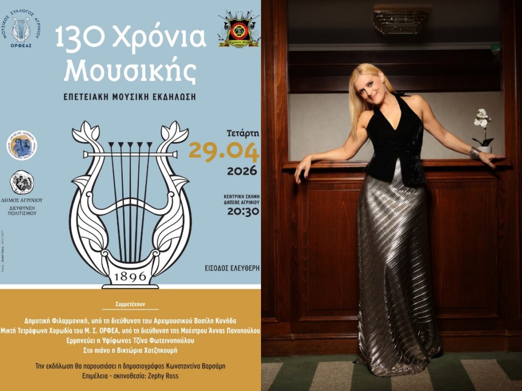Η Δημοτική Φιλαρμονική και η Τετράφωνη Μικτή Χορωδία «Ορφέας» ενώνουν τις δυνάμεις τους σε μια μοναδική επετειακή συναυλία, γιορτάζοντας τα 130 χρόνια αδιάλειπτης μουσικής και πολιτιστικής προσφοράς στον πολιτισμό του Αγρινίου. Δύο από τους ιστορικότερους φορείς της πόλης.