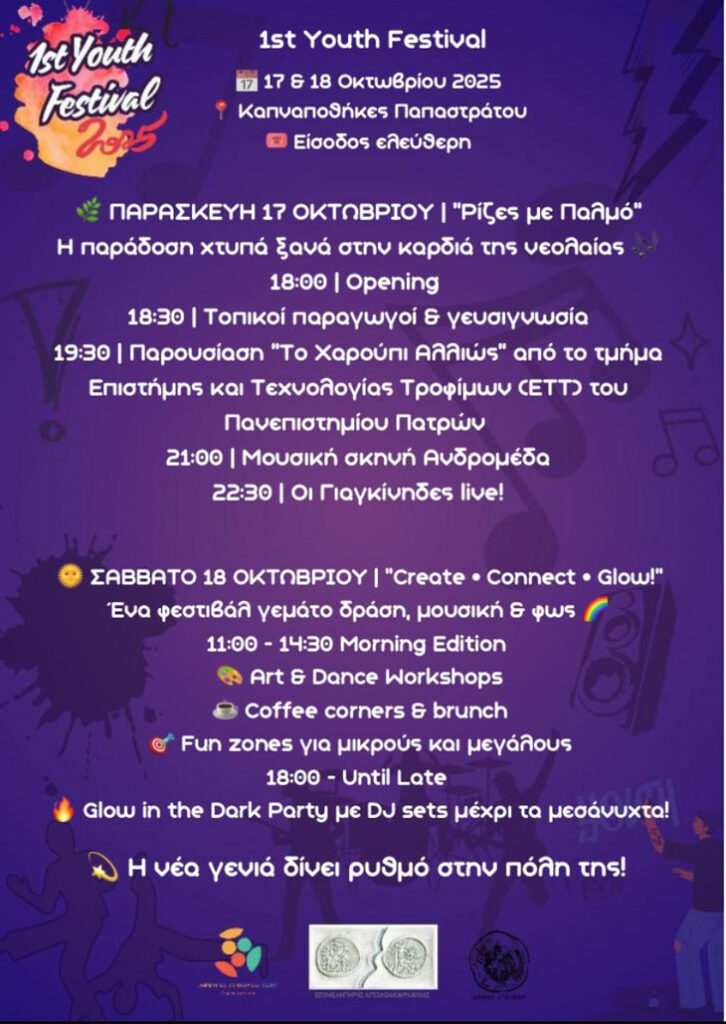 Το 1ο Φεστιβάλ Νεολαίας Αγρινίου διοργανώνει το Δημοτικό Συμβούλιο Νέων του Δήμου Αγρινίου, το διήμερο 17-18 Οκτωβρίου.