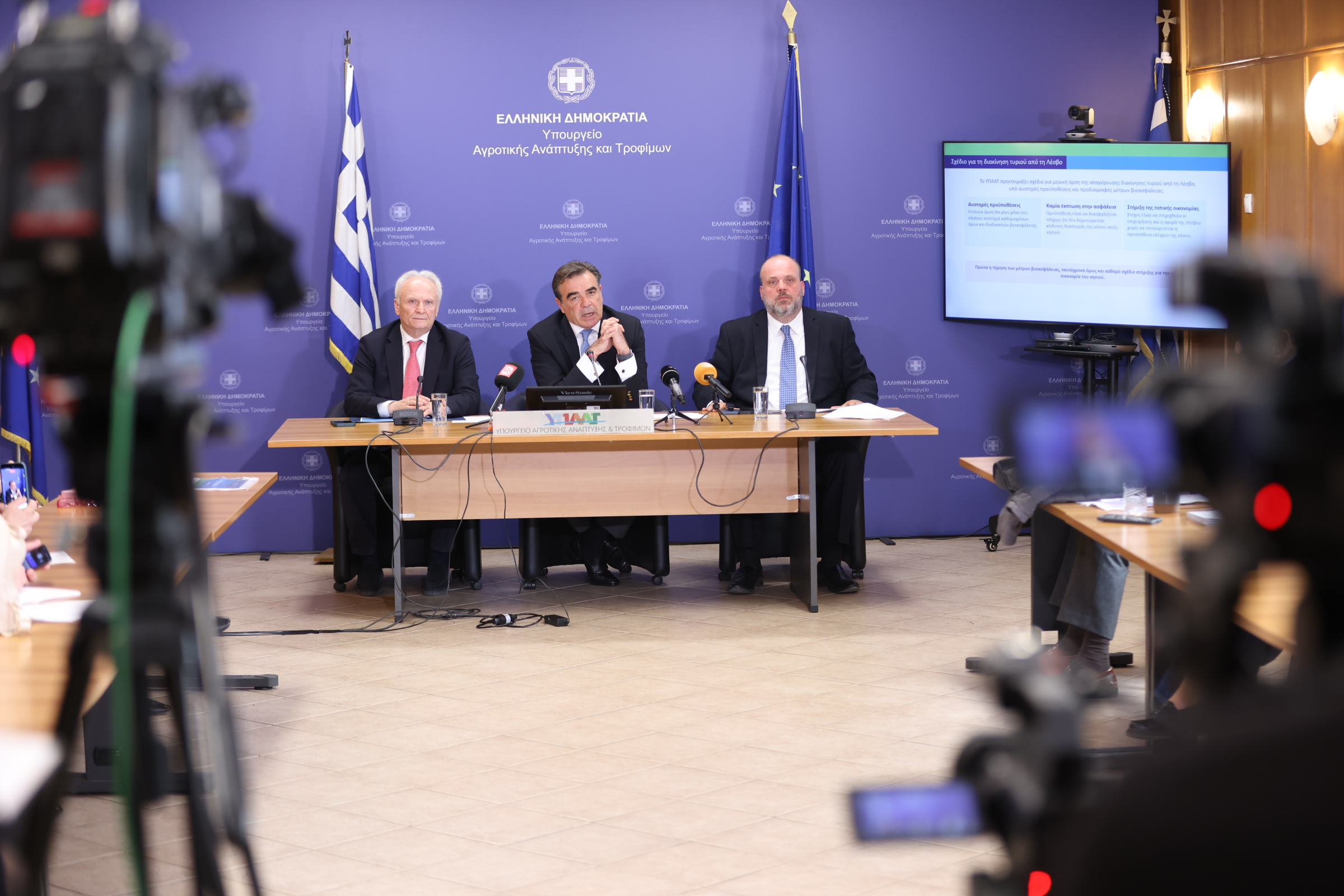 Στη συνέντευξη Τύπου συμμετείχαν ο Υφυπουργός Αγροτικής Ανάπτυξης, Γιάννης Ανδριανός, ο