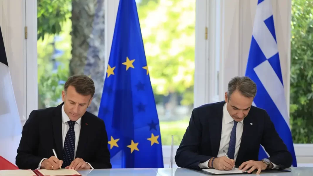 Μία ευρεία στρατηγική συμφωνία που αναβαθμίζει και εμβαθύνει περαιτέρω τις ελληνογαλλικές σχέσεις σε μια πολυεπίπεδη στρατηγική συνεργασία υπέγραψαν πριν από λίγο (25/4/2026) ο Κυριάκος Μητσοτάκης και ο Εμανουέλ Μακρόν με Ελλάδα και Γαλλία να ανανεώνουν την συνεργασία τους.