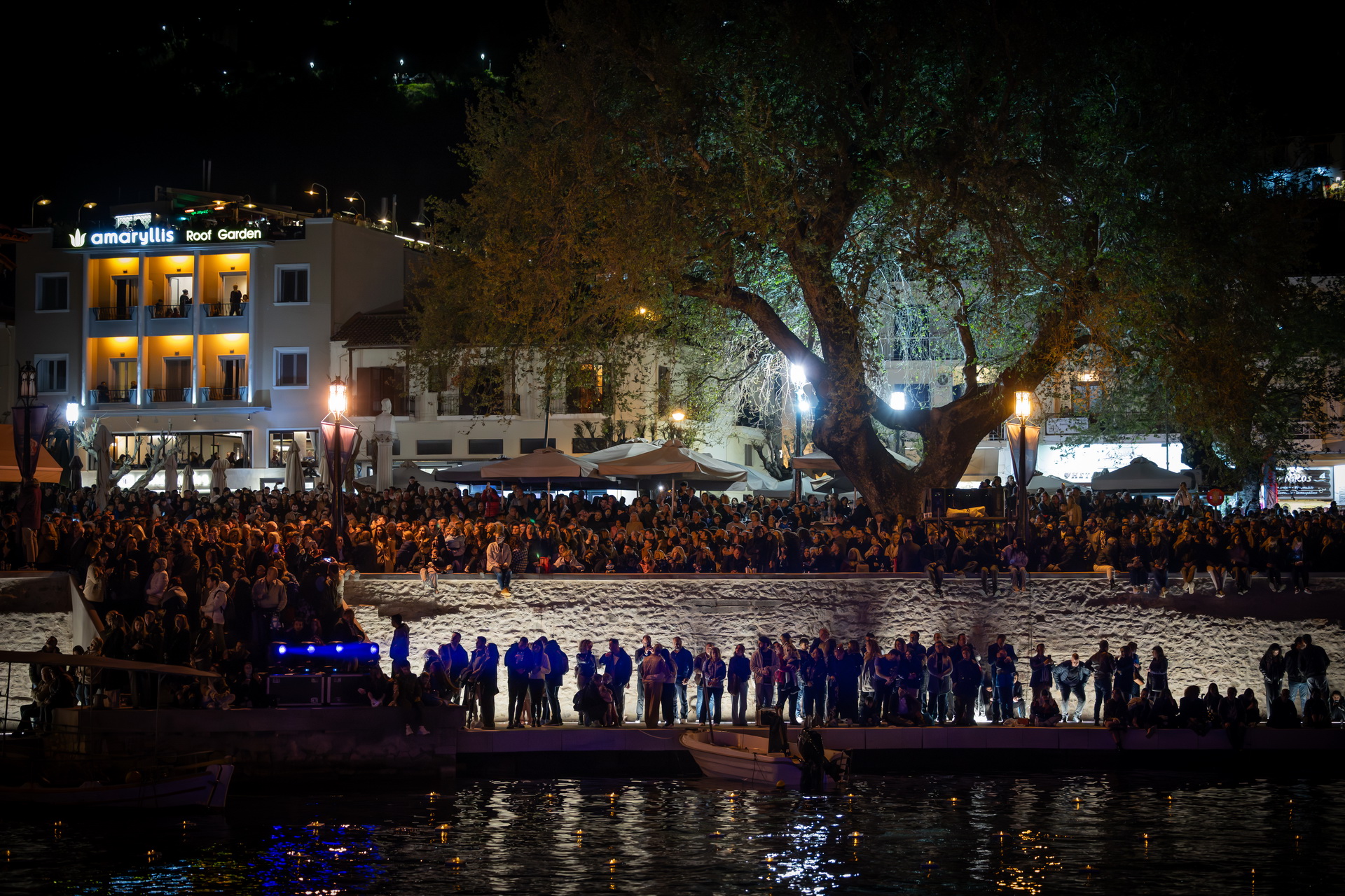 Χιλιάδες επισκέπτες κατέκλυσαν τη Ναύπακτο το βράδυ της Μεγάλης Παρασκευής, συμμετέχοντας σε ένα από τα πιο ιδιαίτερα τελετουργικά της Περιφοράς των Επιταφίων. Το Ενετικό Λιμάνι μεταμορφώθηκε σε ένα σκηνικό σπάνιας ομορφιάς και συγκίνησης, με τις πολεμίστρες να φωτίζονται από δεκάδες αναμμένες δάδες και τον φλεγόμενο σταυρό στην είσοδο να δημιουργεί μία εικόνα που δύσκολα ξεχνιέται.
