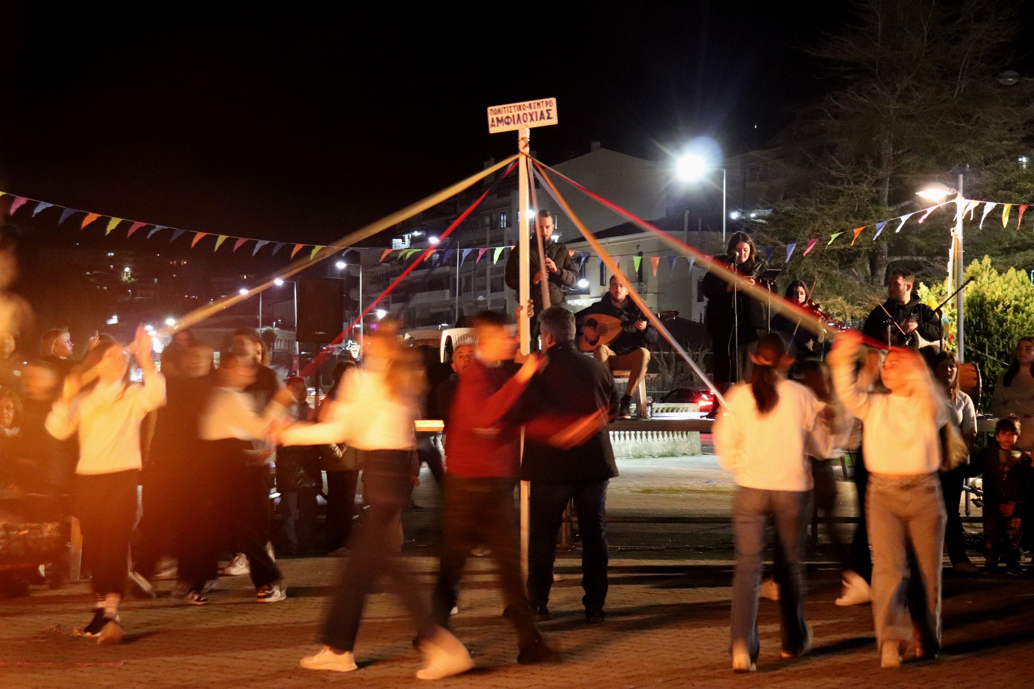 Ένα ξεχωριστό αποκριάτικο έθιμο αναβίωσε το βράδυ του Σαββάτου το Πολιτιστικό Κέντρο Αμφιλοχίας στην κεντρική πλατεία με τους πολίτες να συμμετέχουν με ενθουσιασμό στο χορευτικό γλέντι γύρω από μια μεγάλη φωτιά και τους χορευτές του Συλλόγου να χορεύουν γύρω από το Γαϊτανάκι, με τη ζωντανή ορχήστρα από το Μουσικό Σχολείο Άρτας.