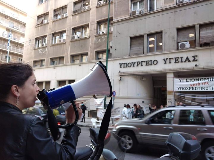 Την Παρασκευή 14 Οκτωβρίου οι υγειονομικοί που βρίσκονται σε αναστολή καθηκόντων συγκεντρώθηκαν έξω απ’το υπουργείο υγείας για να τιμήσουν την αδικοχαμένη μολις 36 χρονων οδοντιάτρου, που εβαλε τέλος στην ζωή της μετά από 13 μήνες αναστολής εργασίας και δυσβάσταχτων χρεών του οδοντιατρείου της.