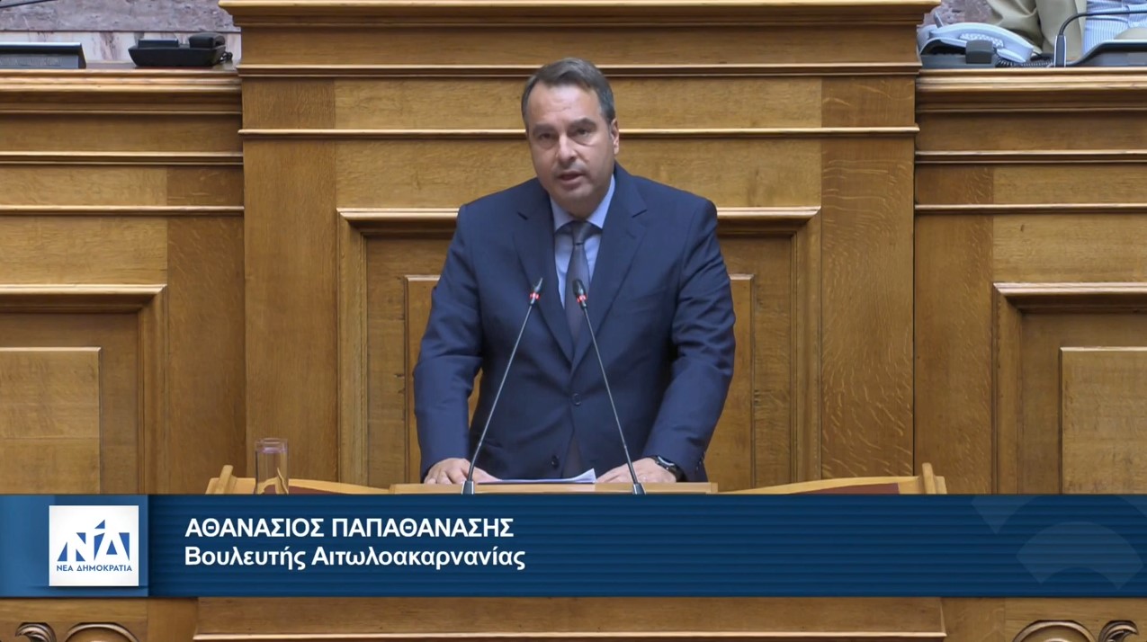Στην Ολομέλεια της Βουλής τοποθετήθηκε ο Βουλευτής Αιτωλοακαρνανίας της Νέας Δημοκρατίας, Θανάσης Παπαθανάσης, υπέρ της κύρωσης των συμβάσεων μίσθωσης μεταξύ του Ελληνικού Δημοσίου και της κοινοπραξίας Chevron – HELLENiQ Energy για τις περιοχές «Α2», «Νότια της Πελοποννήσου», «Νότια της Κρήτης 1» και «Νότια της Κρήτης 2».